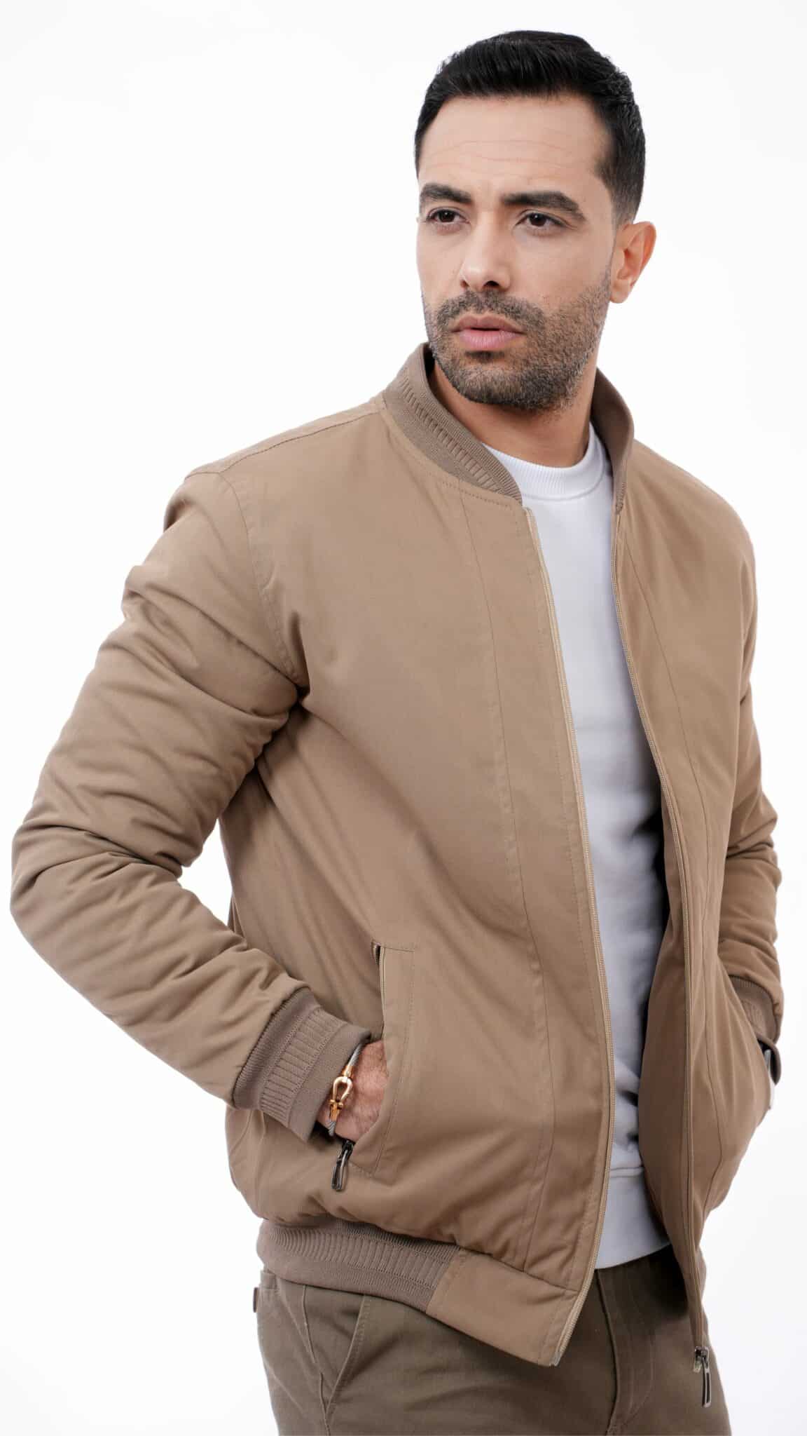 Blouson homme beige, moderne, idéal pour l’hiver doux. Modèle tendance signé Évasion, disponible en promotion. Style élégant et confortable.