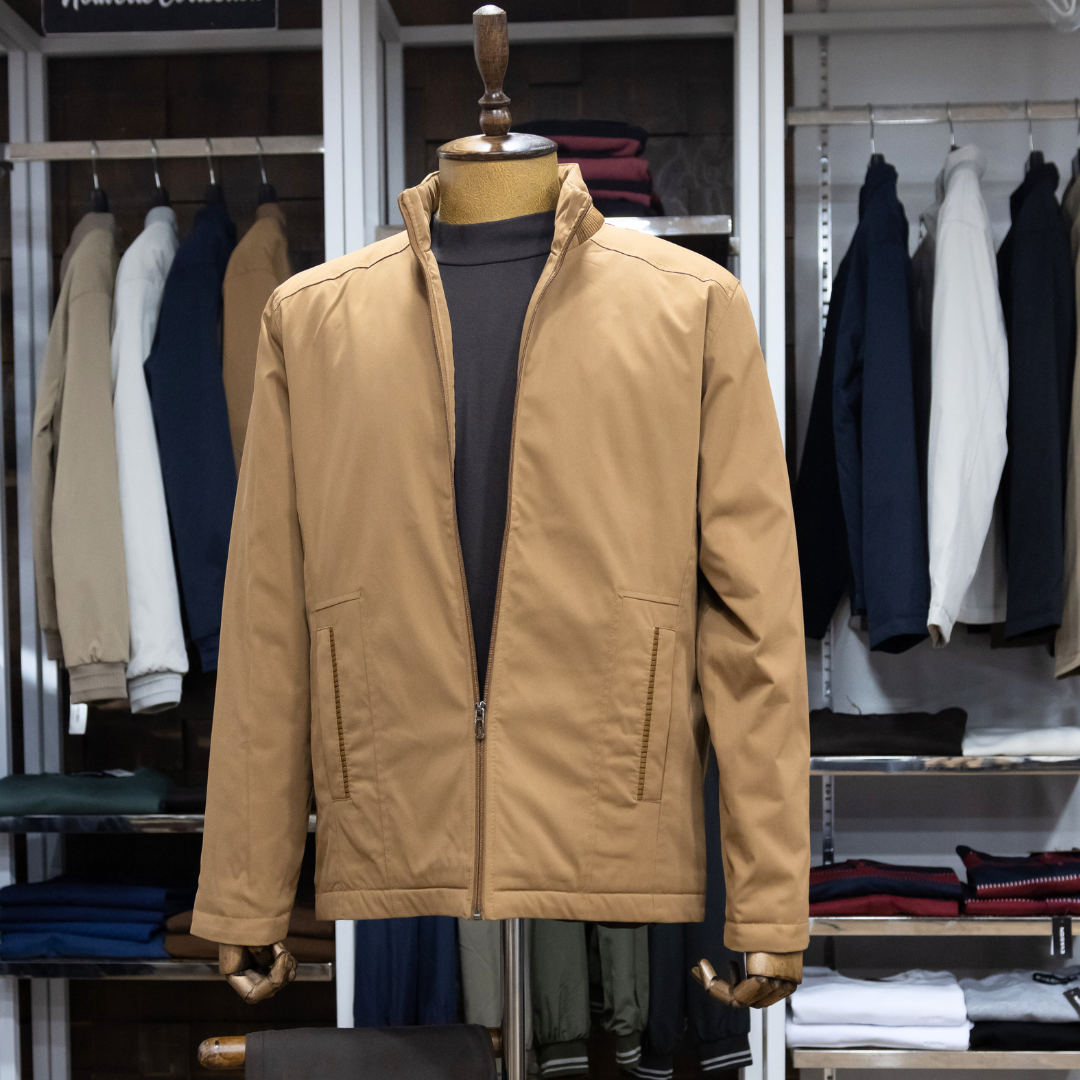 Blouson homme camel Premium, moderne et léger, parfait pour la mi-saison et l’hiver . Modèle tendance signé Évasion, confortable et actuellement en promotion.
