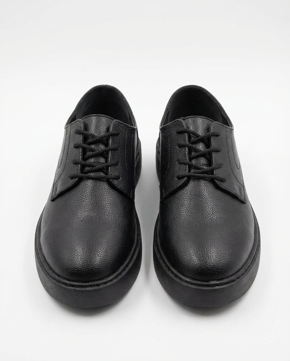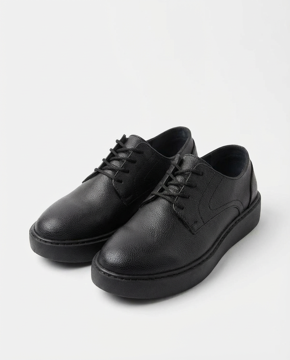 Design Hybride : Le montage Derby classique avec lacets fins s’associe à une semelle robuste ton sur ton pour un look « Urban Chic » très tendance en Tunisie.