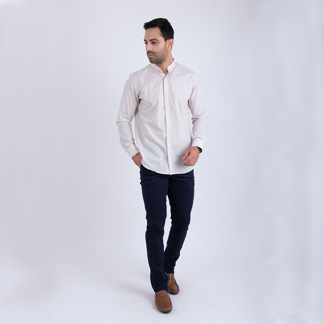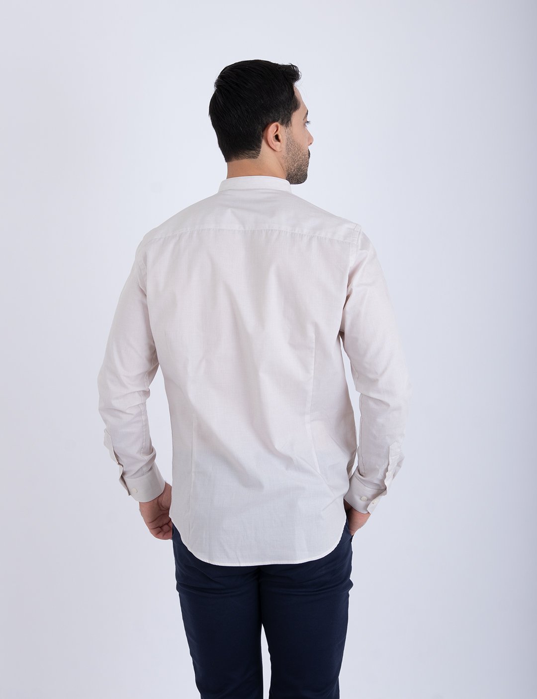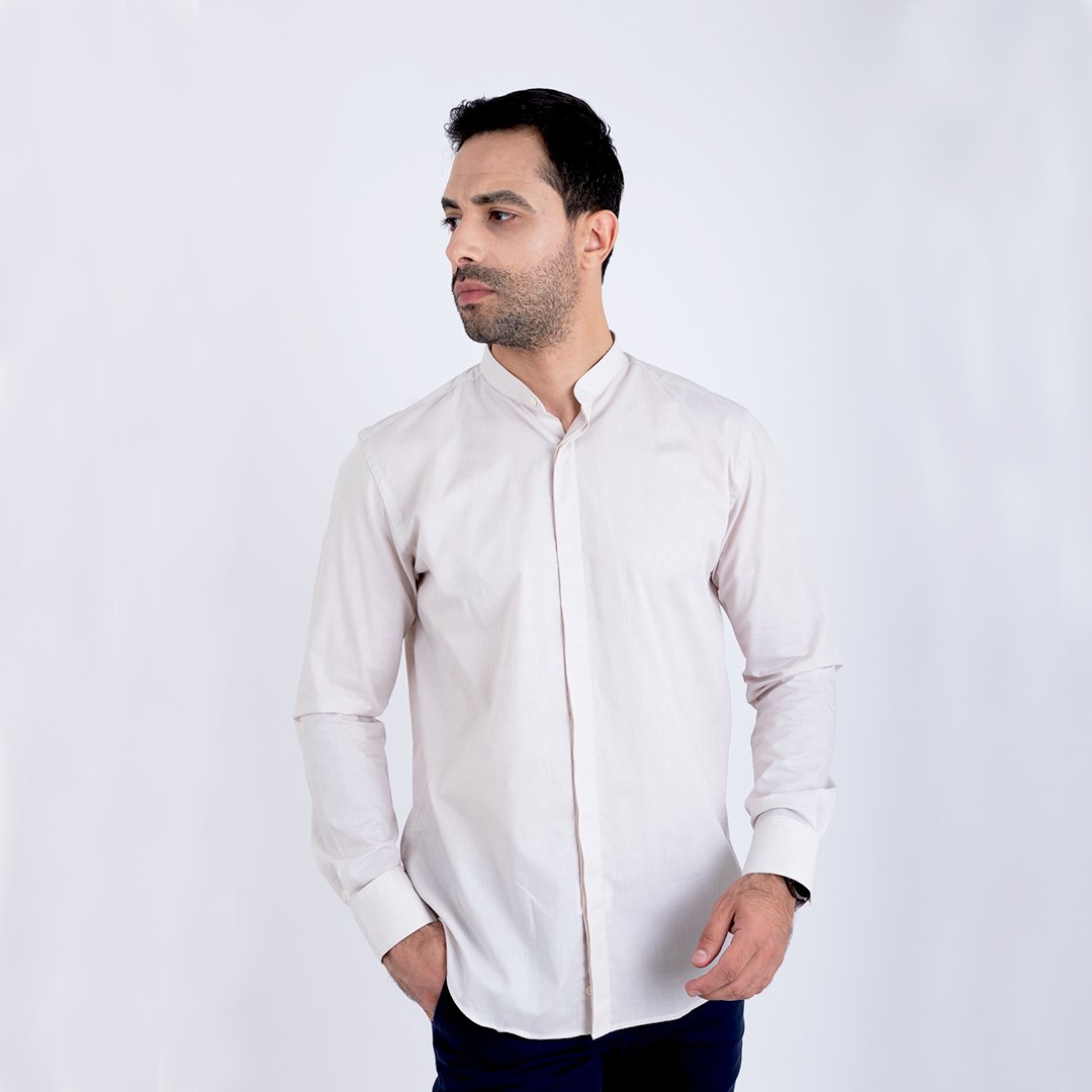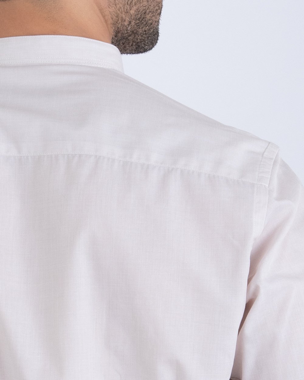 Optez pour un style épuré et sophistiqué avec cette chemise col mao pour homme en coloris beige. Conçue pour allier confort, élégance et praticité, elle se démarque par son col mao minimaliste, sans rabat, qui modernise instantanément votre tenue.