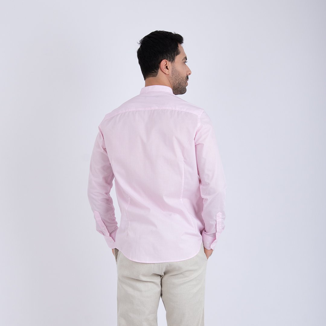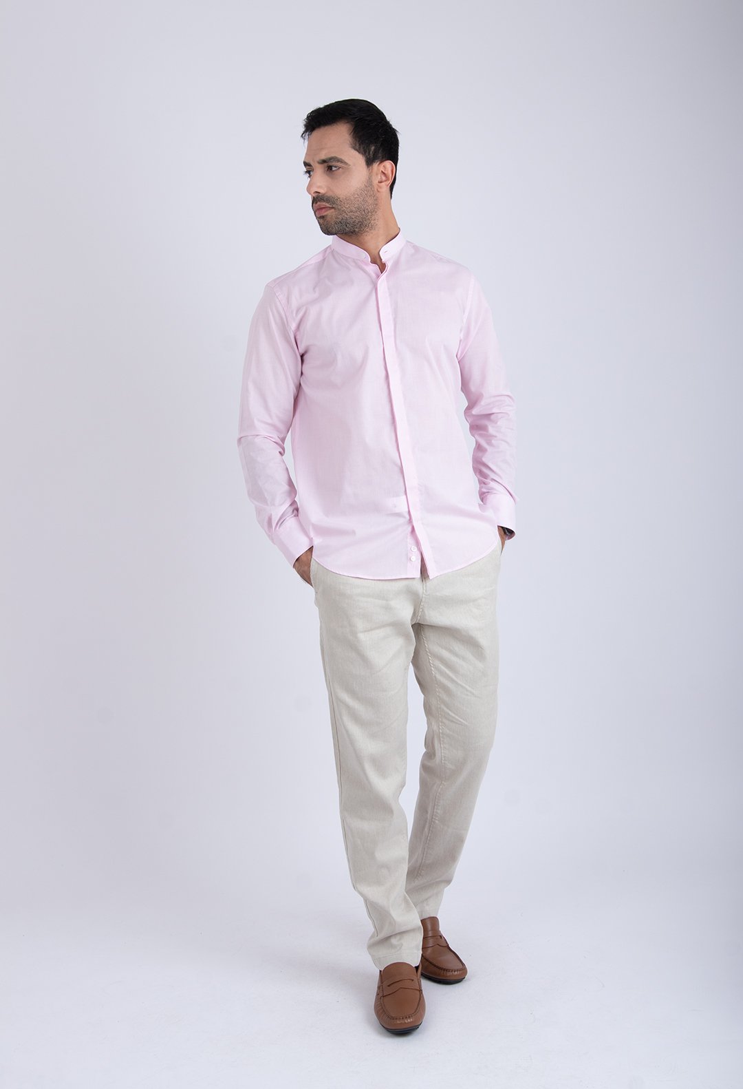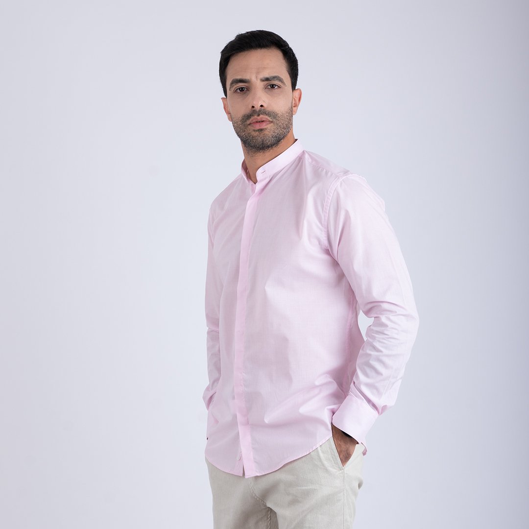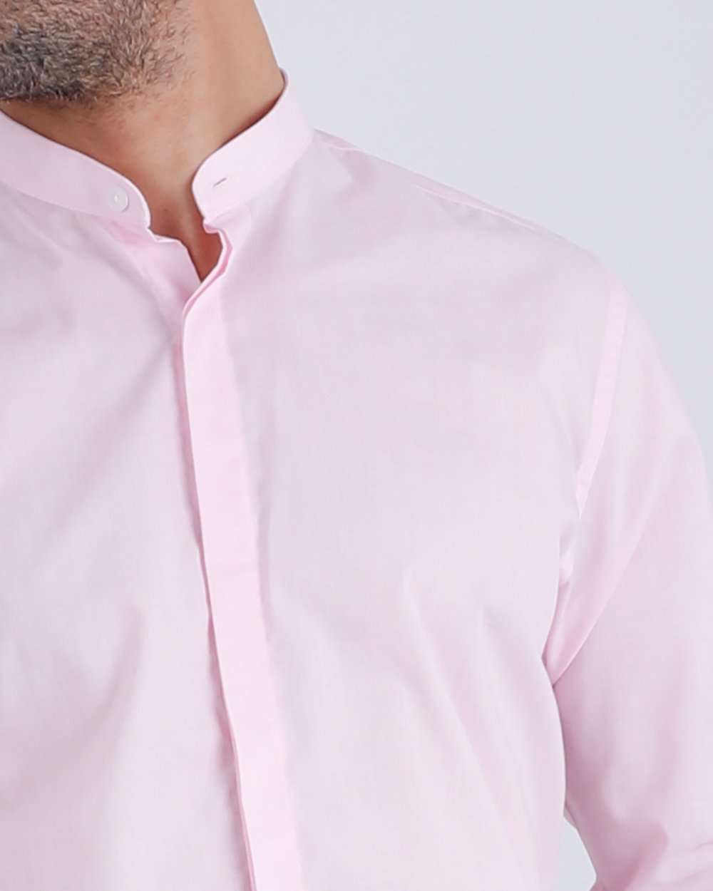 Optez pour un style épuré et sophistiqué avec cette chemise col mao pour homme en coloris rose. Conçue pour allier confort, élégance et praticité, elle se démarque par son col mao minimaliste, sans rabat, qui modernise instantanément votre tenue.
