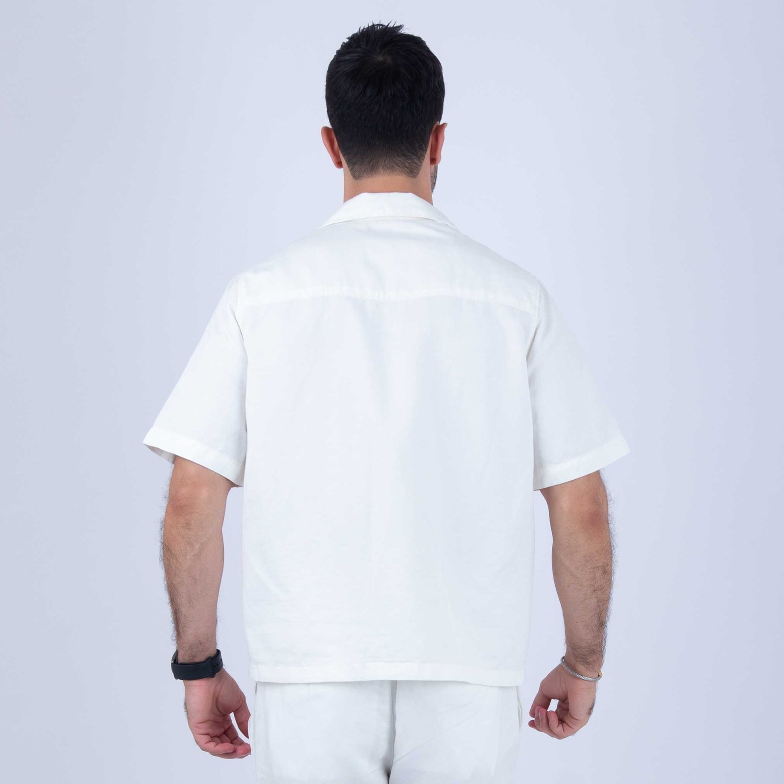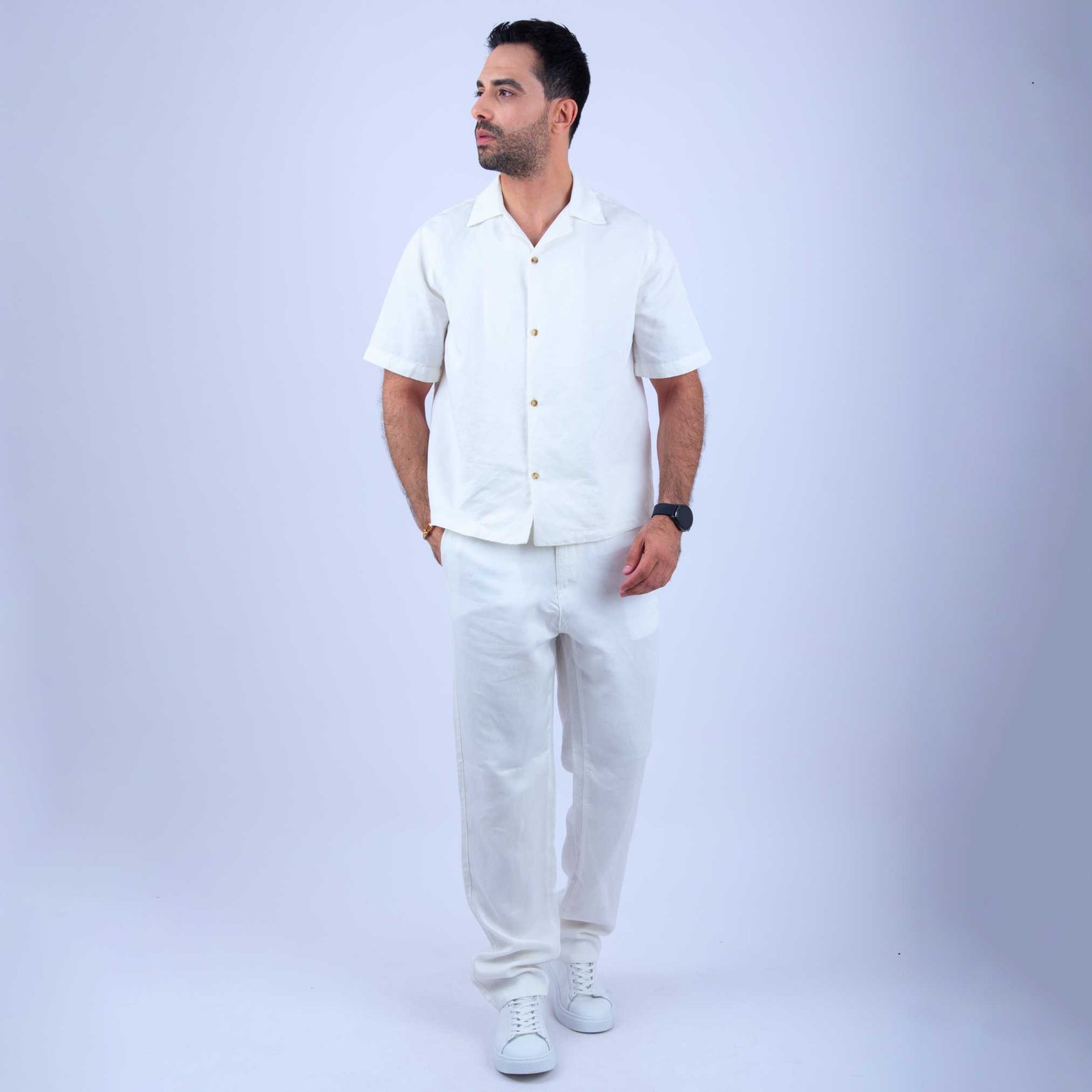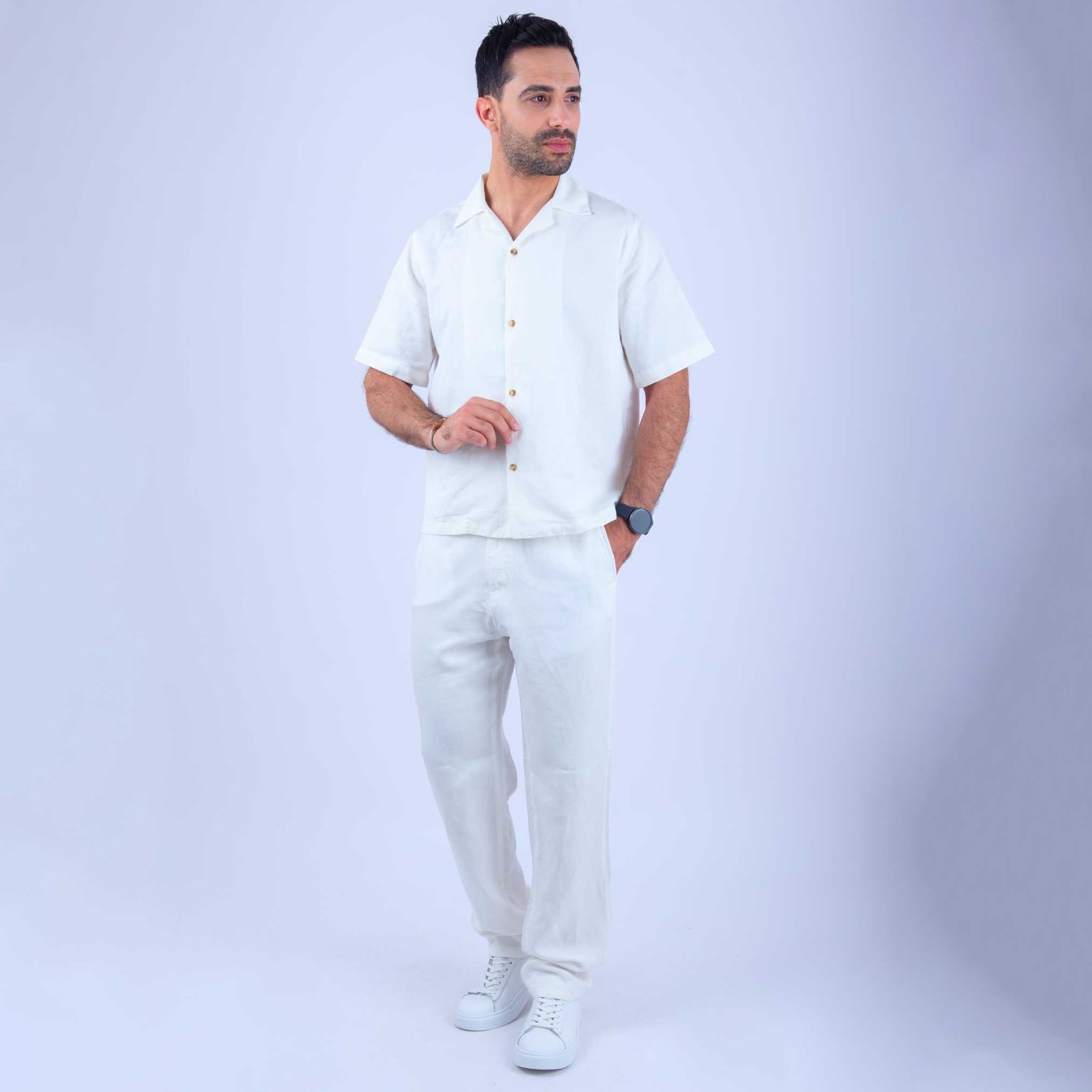 Adoptez l’élégance estivale avec cette chemise homme en lin blanche à motif discret.
