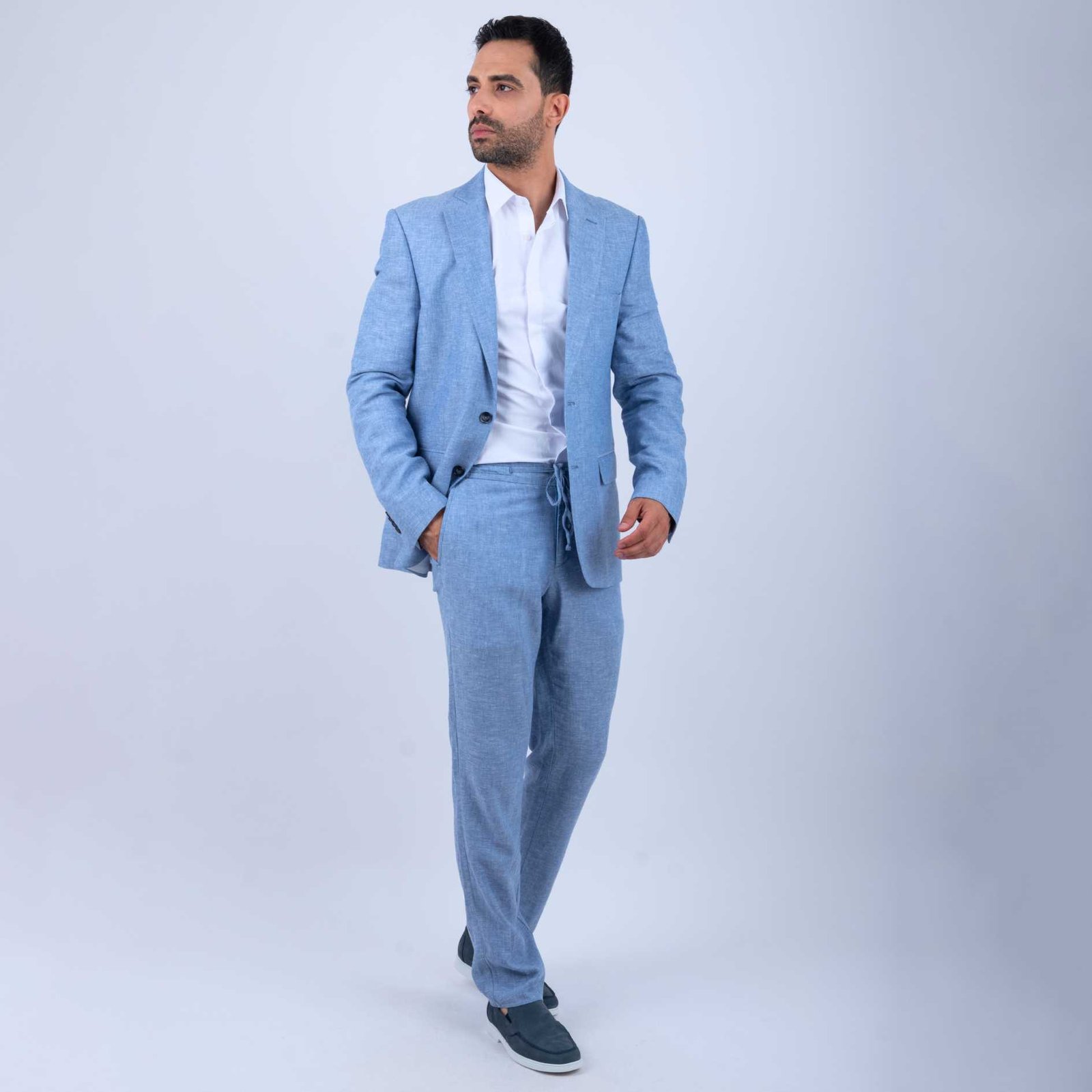 Pour découvrir d’autres modèles, explorez notre collection complète de costumes homme en lin. Vous y trouverez différentes coupes, couleurs et finitions adaptées à chaque occasion.