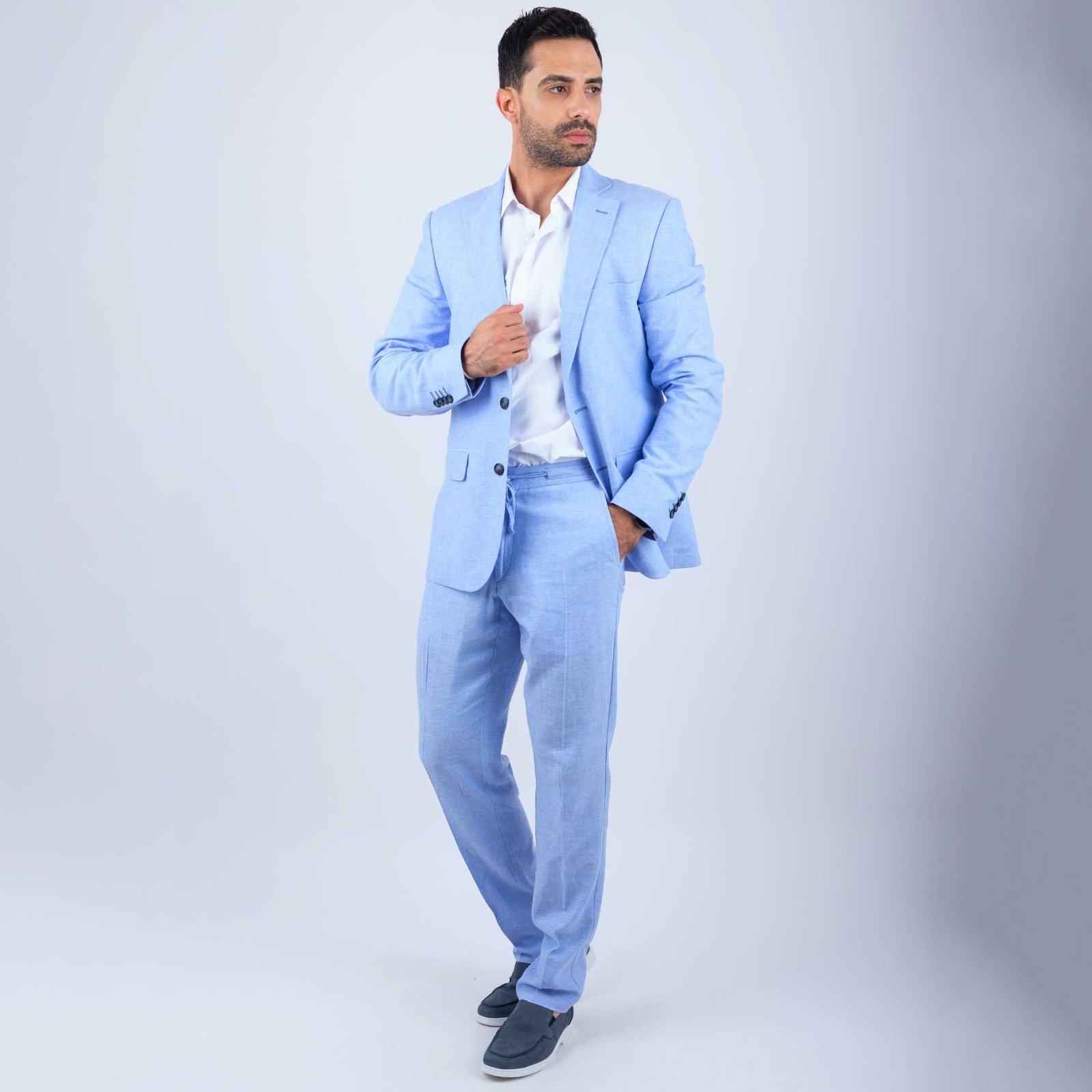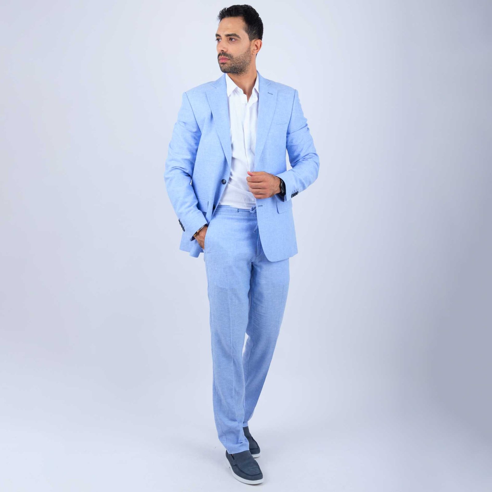 Pour découvrir d’autres modèles, explorez notre collection complète de costumes homme en lin. Vous y trouverez différentes coupes, couleurs et finitions adaptées à chaque occasion.
