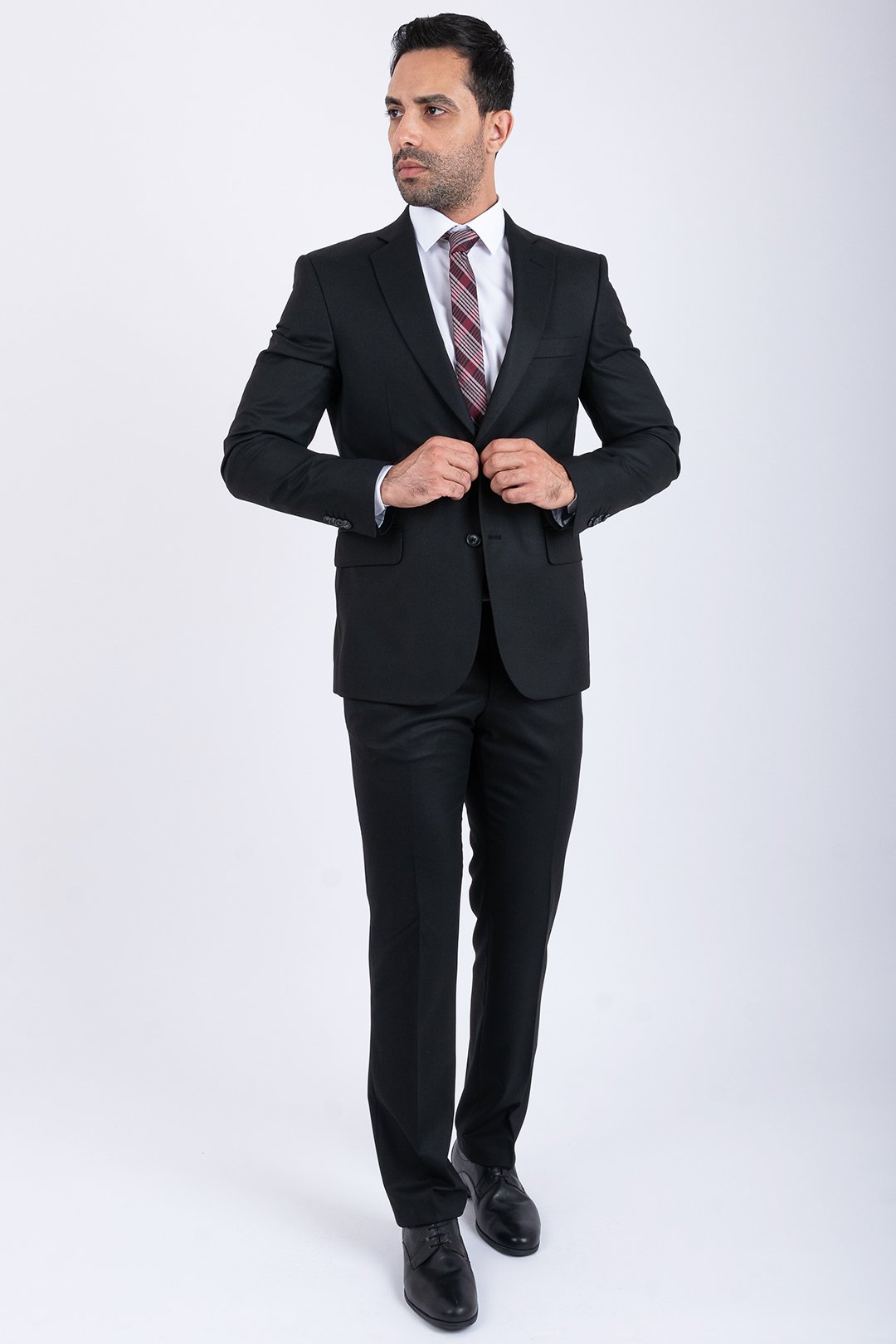 Confectionné à partir d’un tissu de qualité supérieure, ce costume homme élégant se compose d’une veste structurée à deux boutons et d’un pantalon droit, pour un tombé impeccable. La doublure intérieure est travaillée pour garantir à la fois confort et durabilité. Ce costume noir chic s’adapte à toutes les morphologies et reste parfaitement en place, même après plusieurs heures.