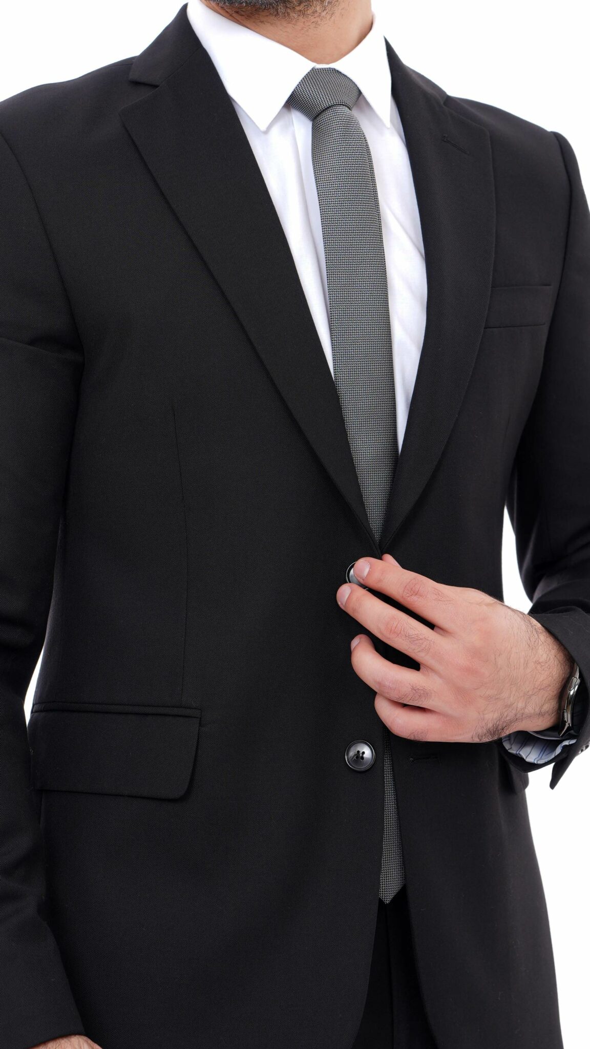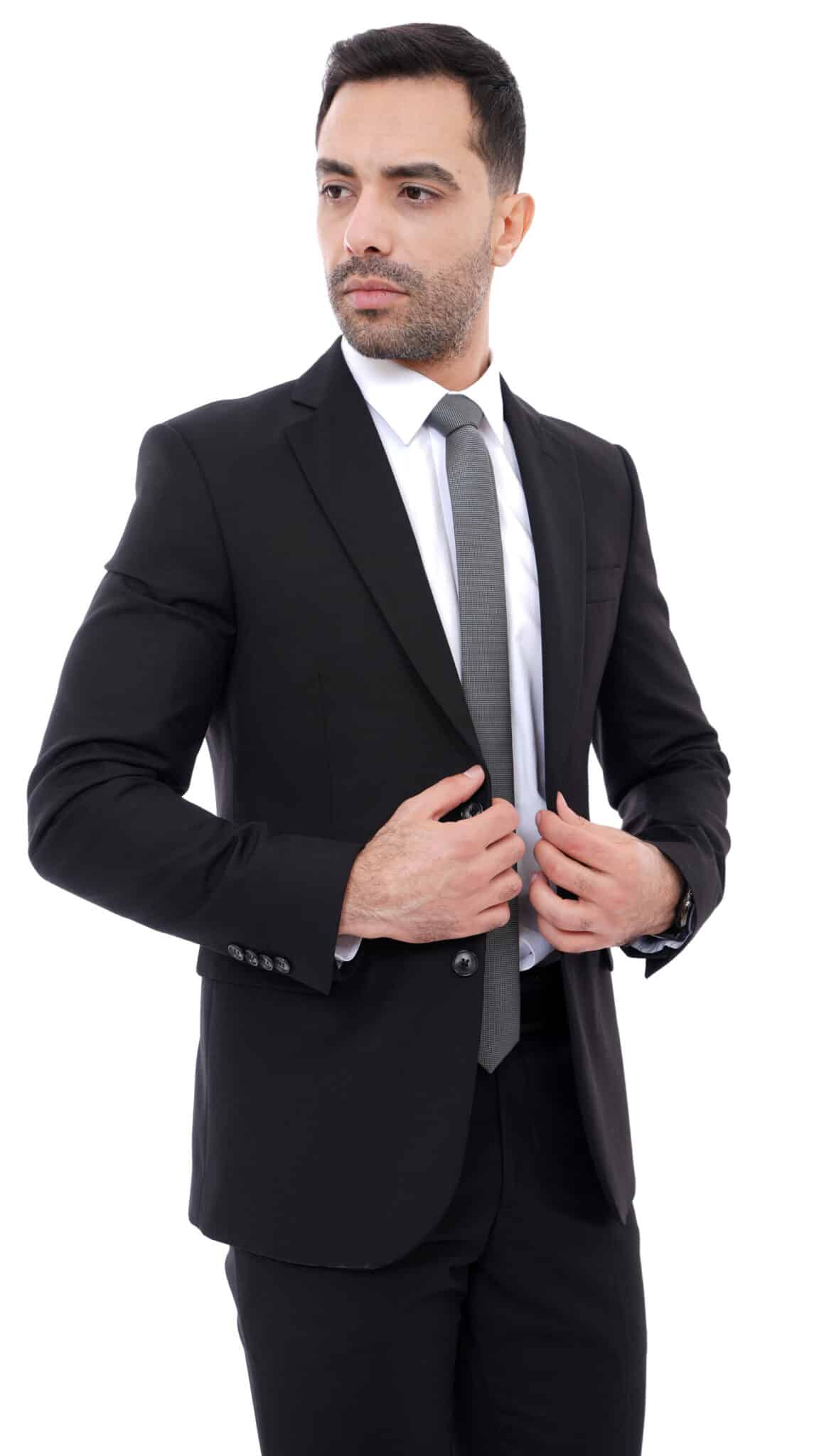 Costume noir homme EVASION, coupe moderne et finitions soignées. Idéal pour le bureau, les cérémonies et un style élégant en Tunisie.