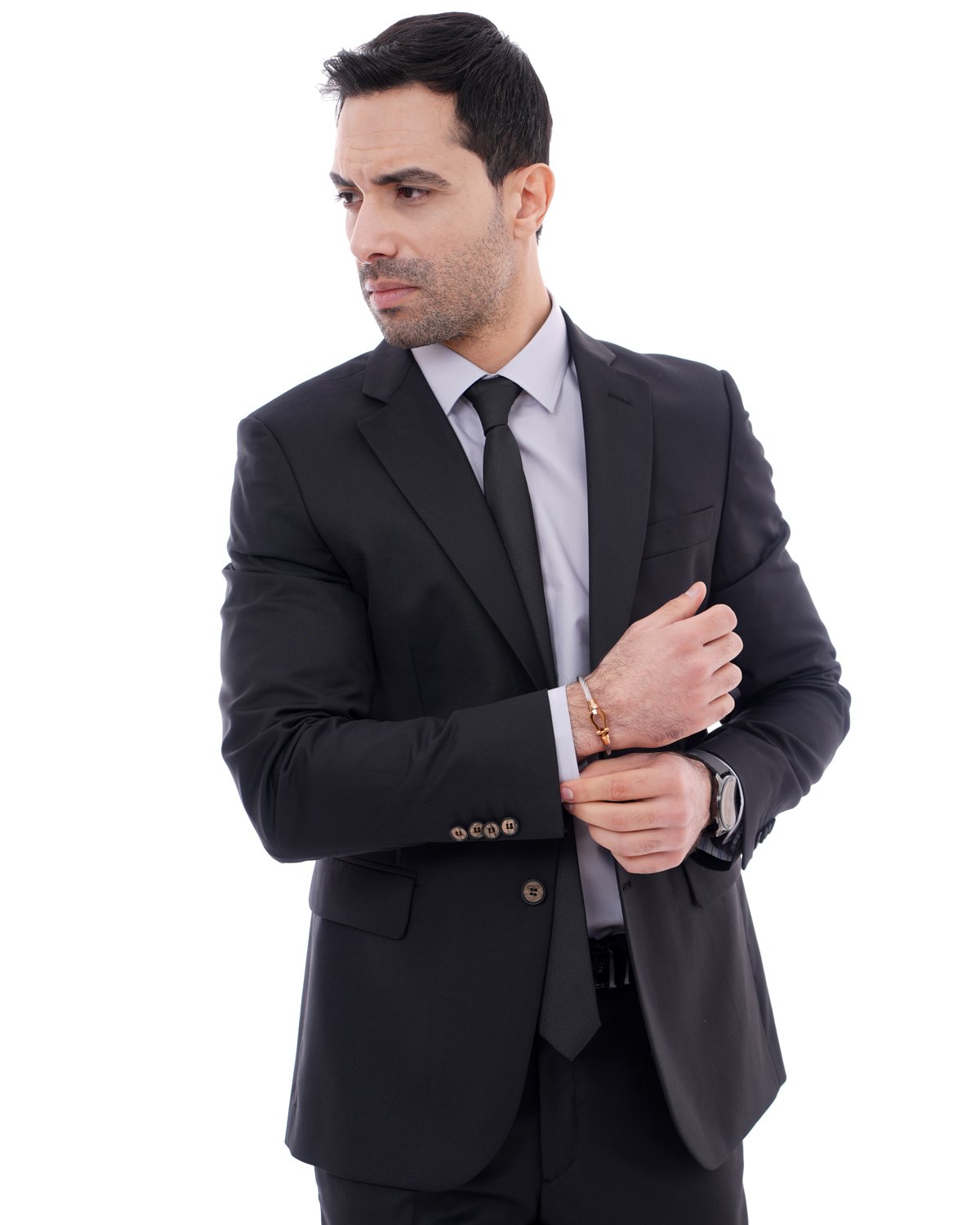 L’avantage majeur de ce modèle est sa coupe structurée qui modernise le noir traditionnel. La veste cintrée souligne naturellement la carrure, tandis que le pantalon ajusté allonge les jambes pour une ligne nette et dynamique. Ce costume noir homme a été conçu pour traverser les saisons et les modes, restant une valeur sûre année après année.