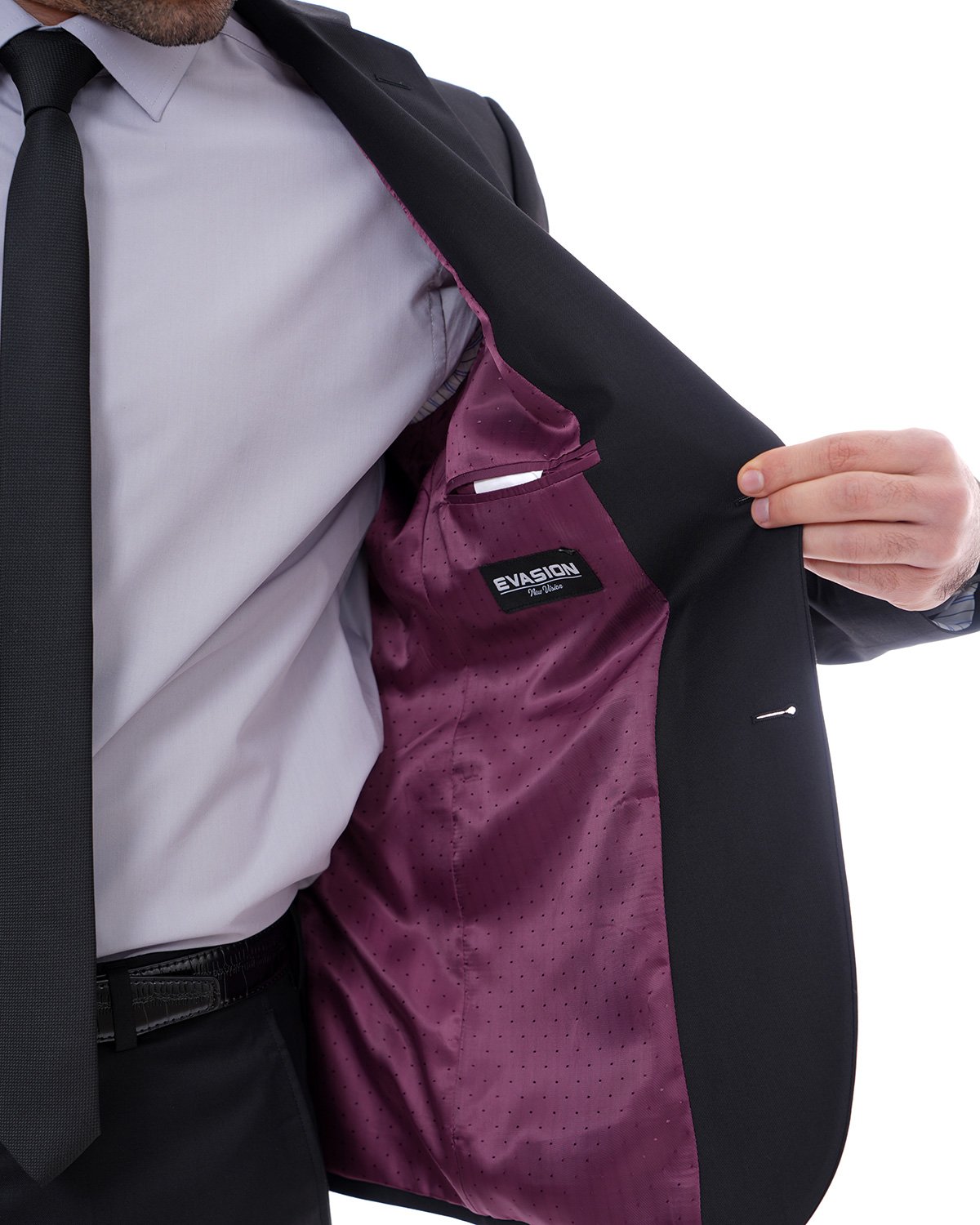 Le conseil style Évasion : Le noir s’accorde avec tout ! Jouez la carte du contraste avec une chemise blanche et une cravate vive pour un mariage, ou optez pour une chemise grise (comme sur notre modèle) avec des chaussures noires vernies pour un look de soirée sophistiqué et ultra-moderne.