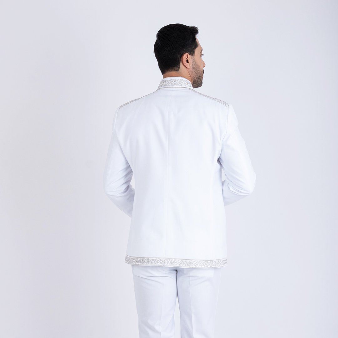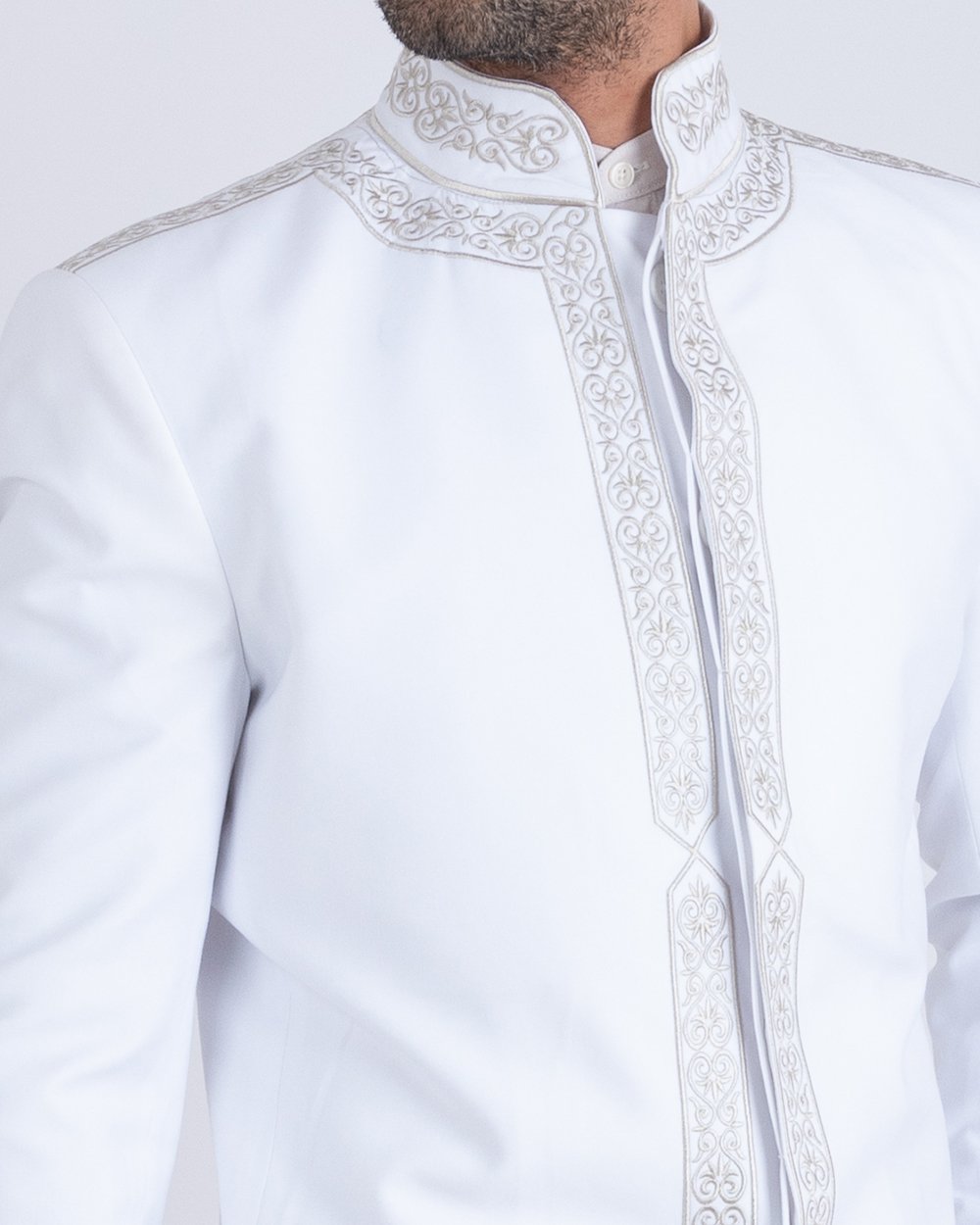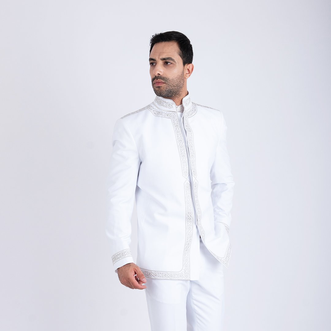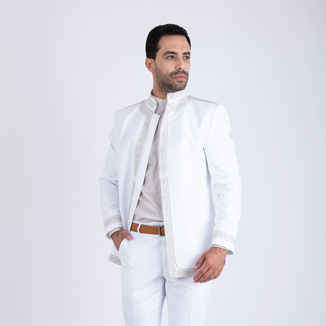 Costume Traditionnel Tunisien Homme Blanc Brodé – Élégance & Raffinement