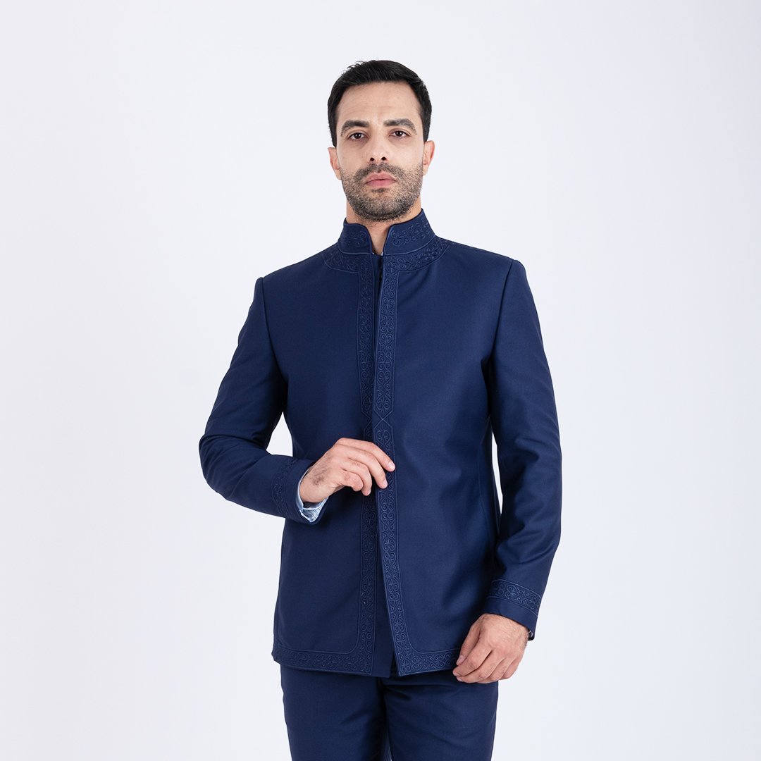Ce costume allie tradition et modernité avec des détails brodés, soigneusement placés sur le devant, les poignets et le col. La qualité du tissu garantit une tenue fluide et une sensation agréable sur la peau.