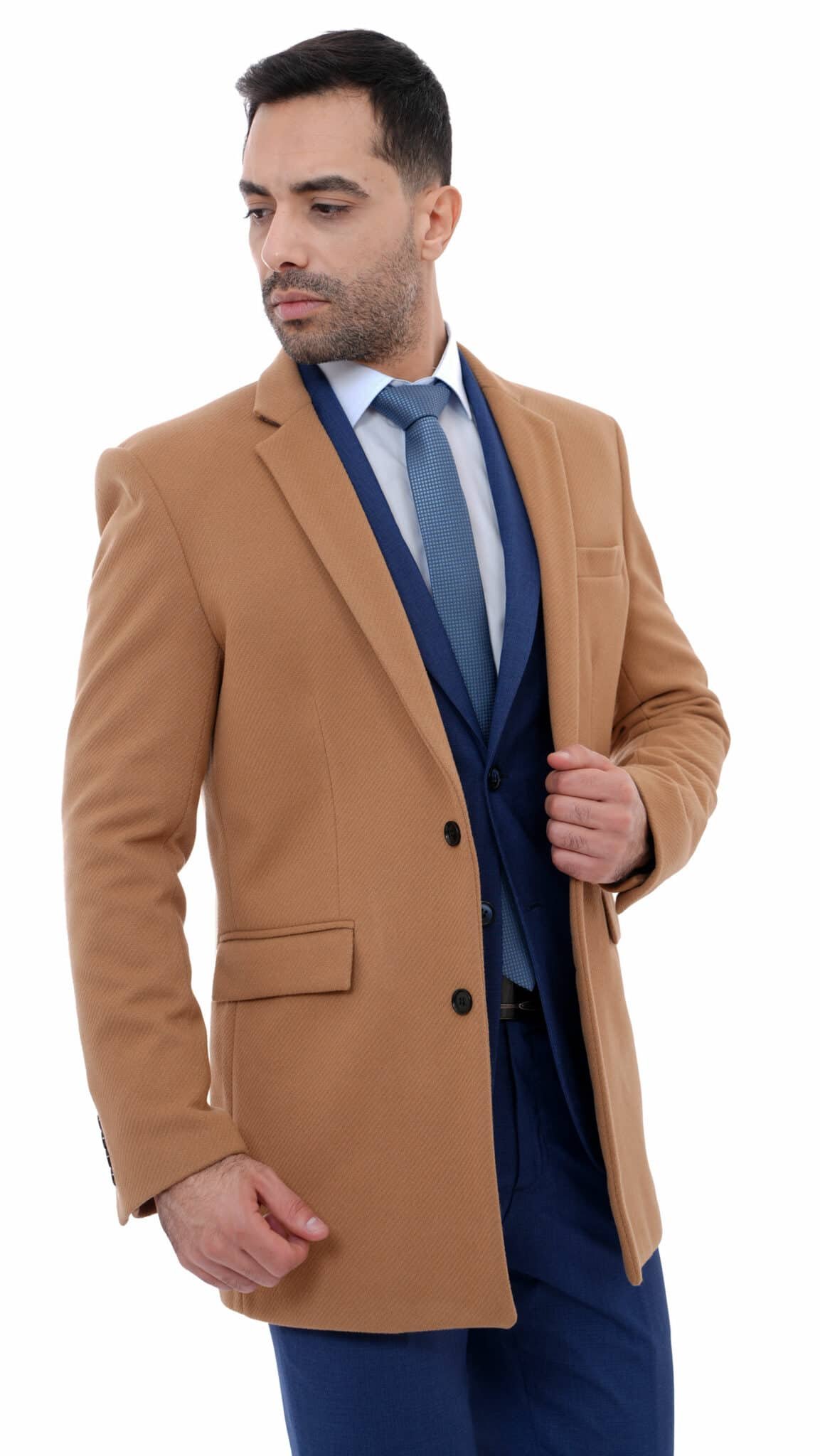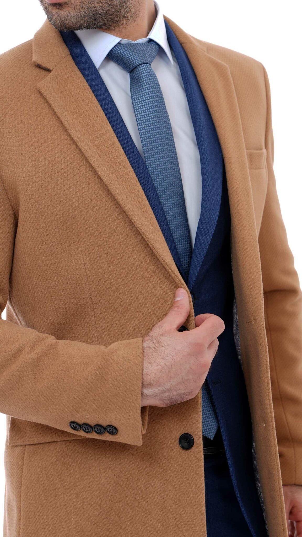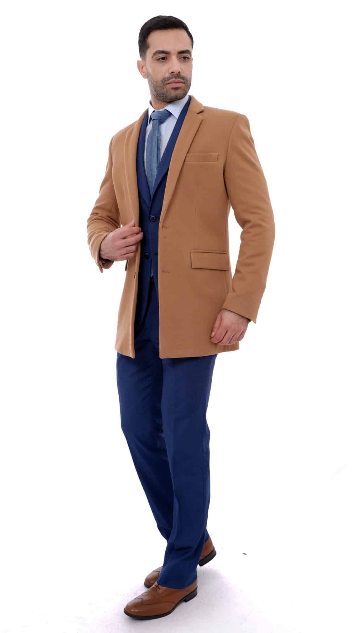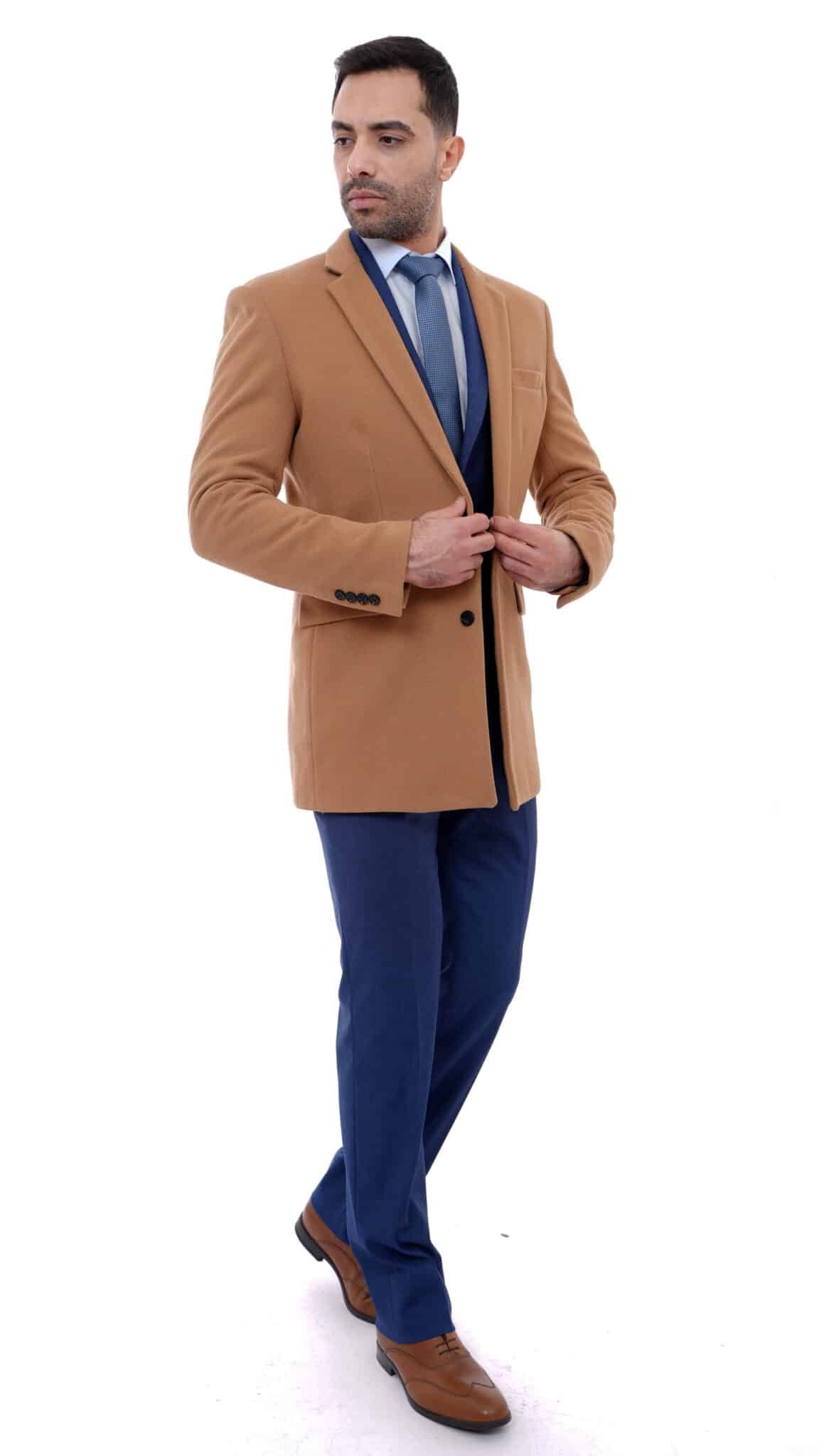 Le manteau camel homme est l’un des meilleurs choix pour accompagner un costume. La couleur camel crée un contraste élégant avec le bleu marine, le gris ou le noir, et donne une allure premium.