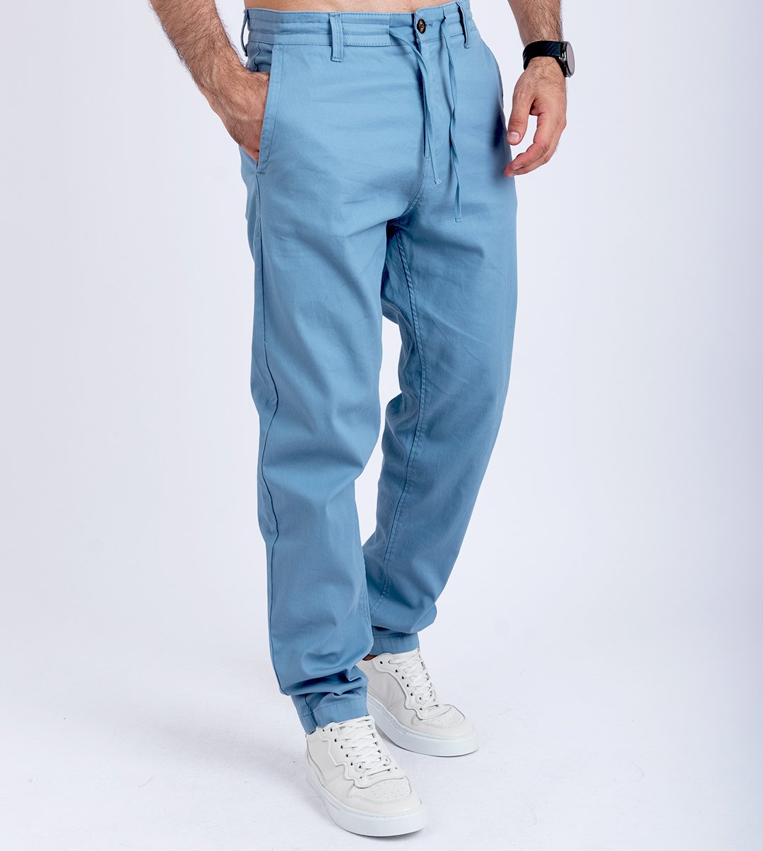 Sa coupe fuselée avec finition élastiquée aux chevilles donne une silhouette moderne, inspirée du streetwear. Le coloris bleu clair apporte une touche fraîche et originale, facile à associer avec un t-shirt blanc, un polo ou même un sweat oversize.