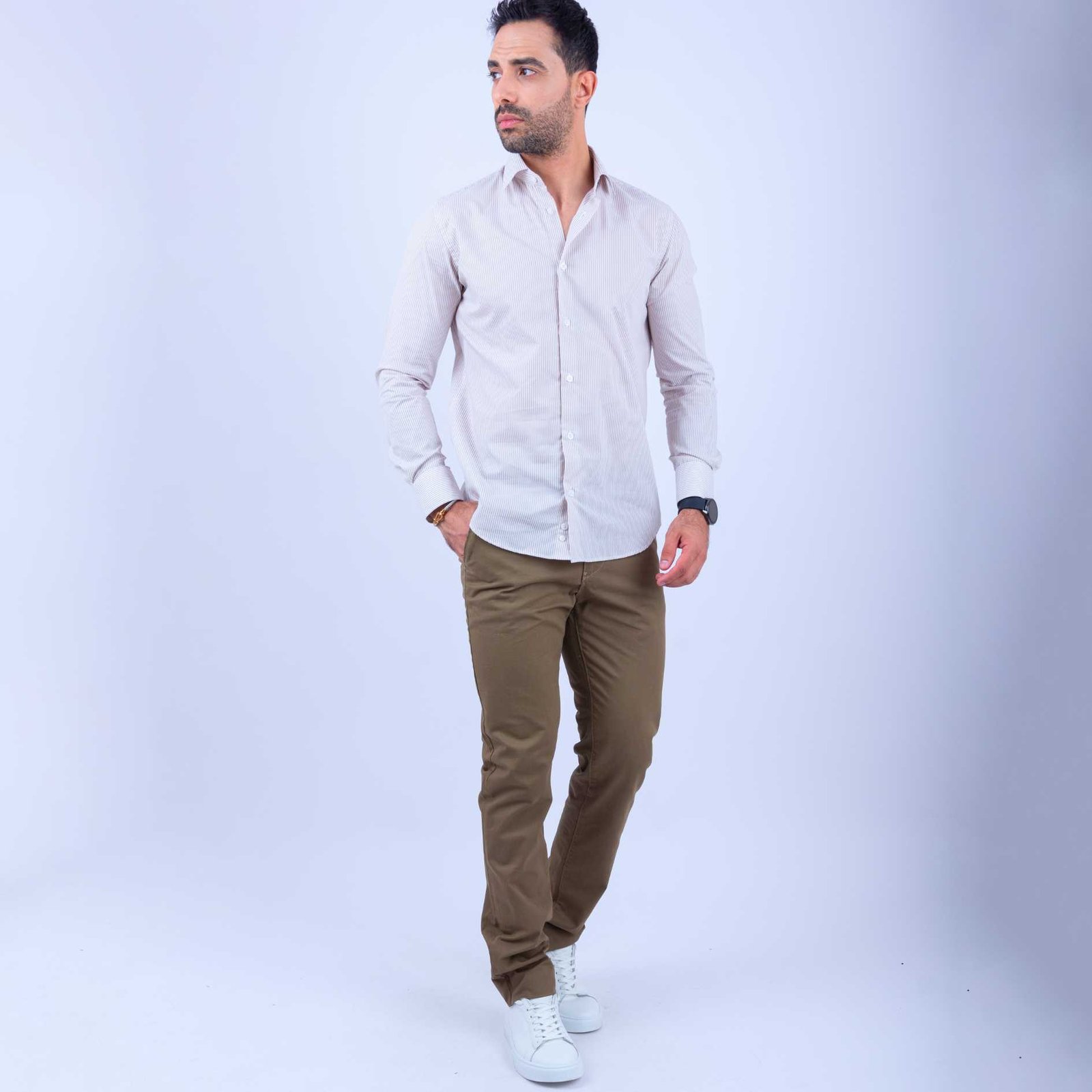 Le pantalon homme camel foncé se distingue par sa teinte chaude et élégante. Cette couleur est l’une des plus polyvalentes pour composer des tenues harmonieuses :