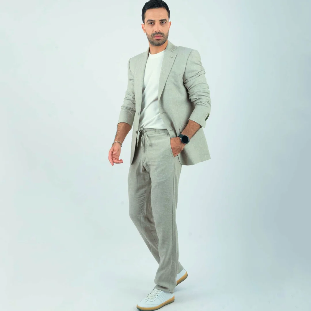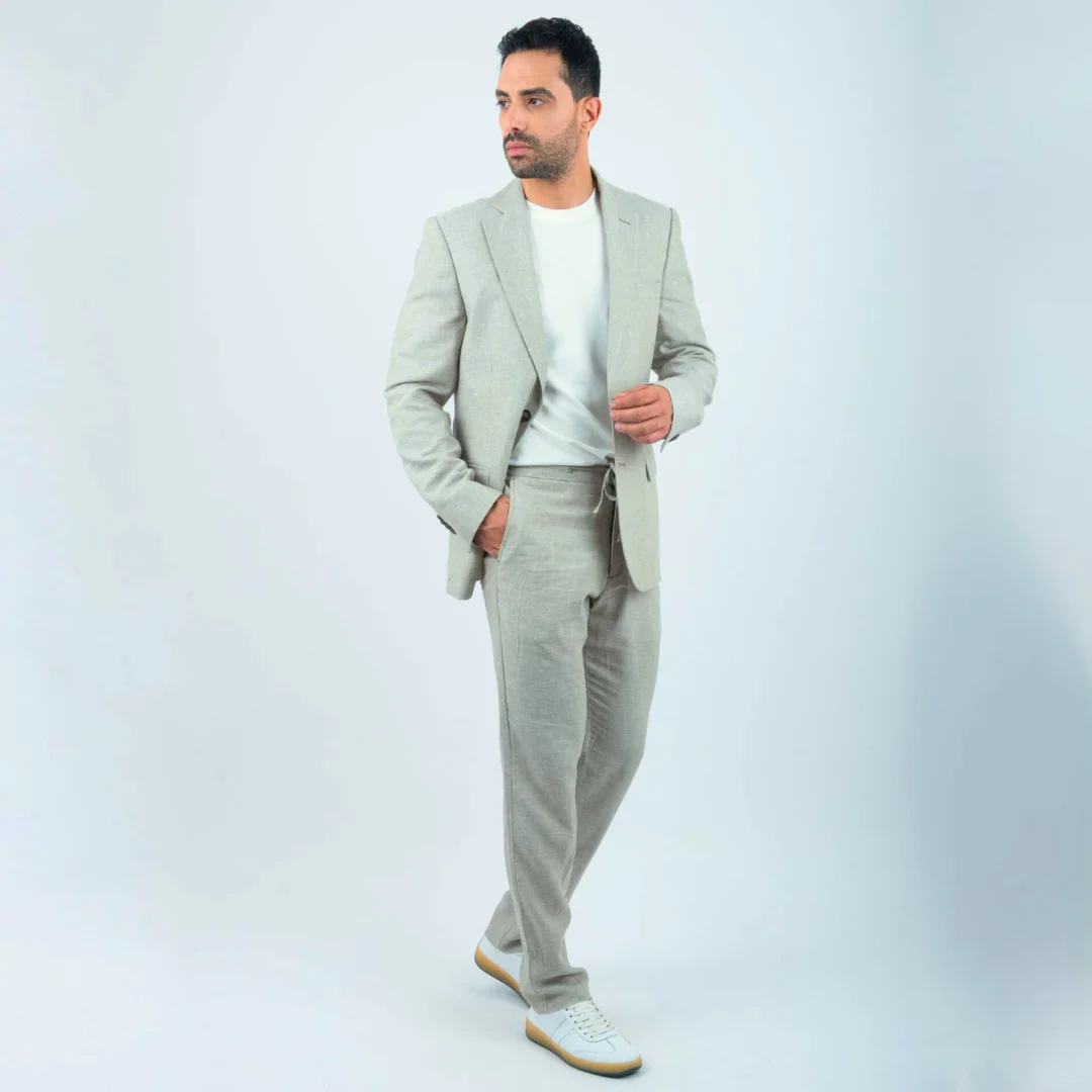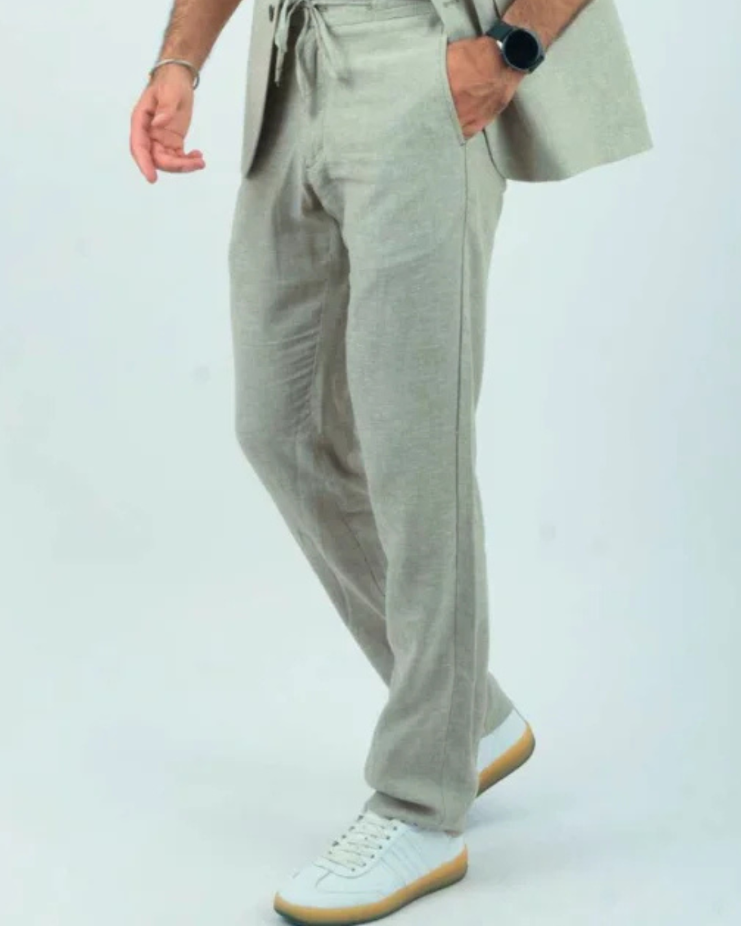 Adoptez un style frais et élégant avec ce pantalon homme en lin vert