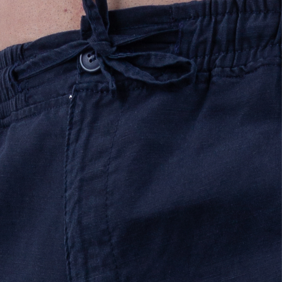 La couleur bleu marine, intemporelle, s’associe facilement avec une chemise en lin, un polo ou un t-shirt uni.