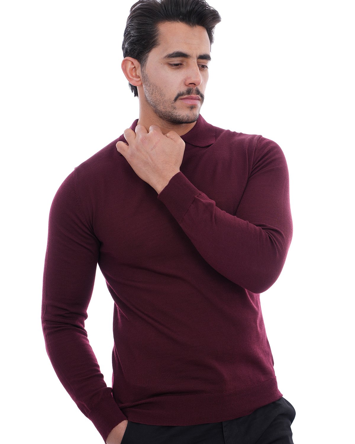 Pull col chemise bordeaux – Confort & Élégance