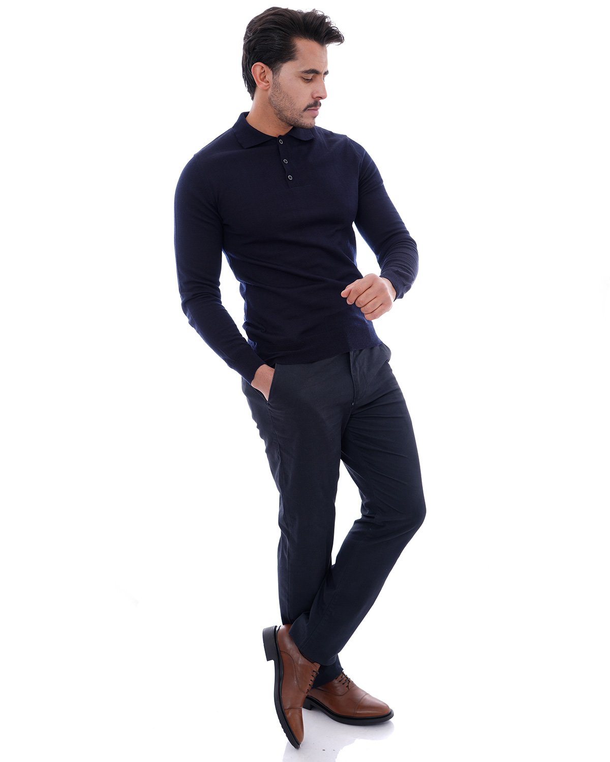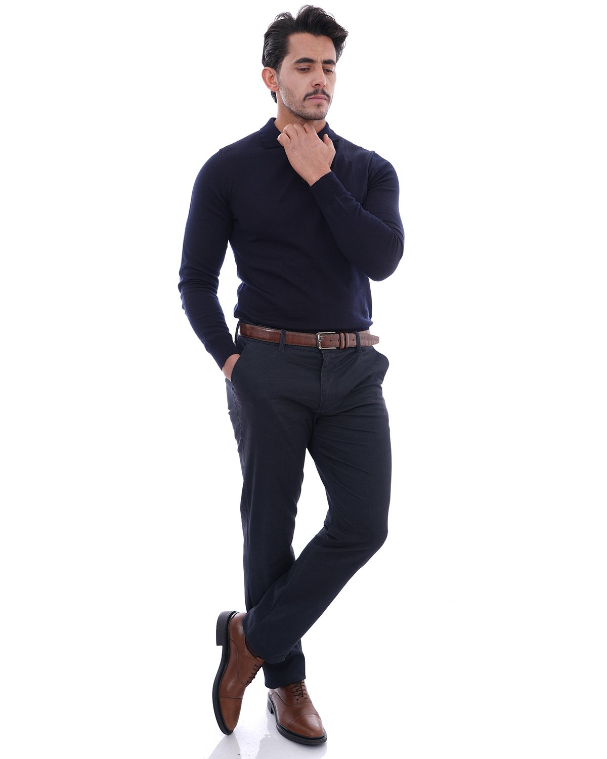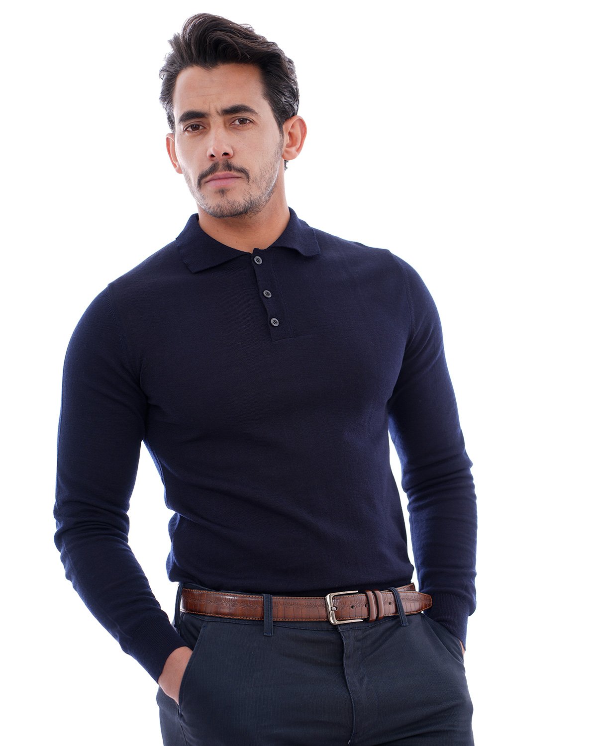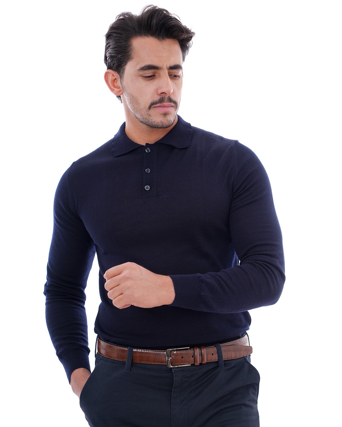 Pull col chemise marine – Confort & Élégance