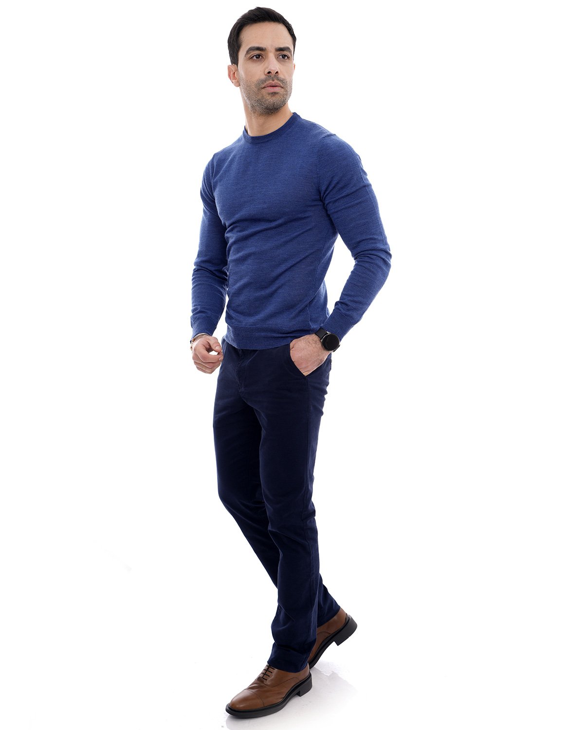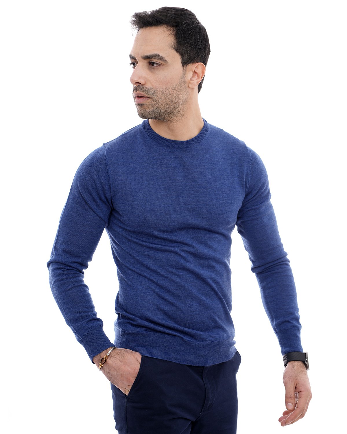 Pull col rond bleu – Confort & Élégance