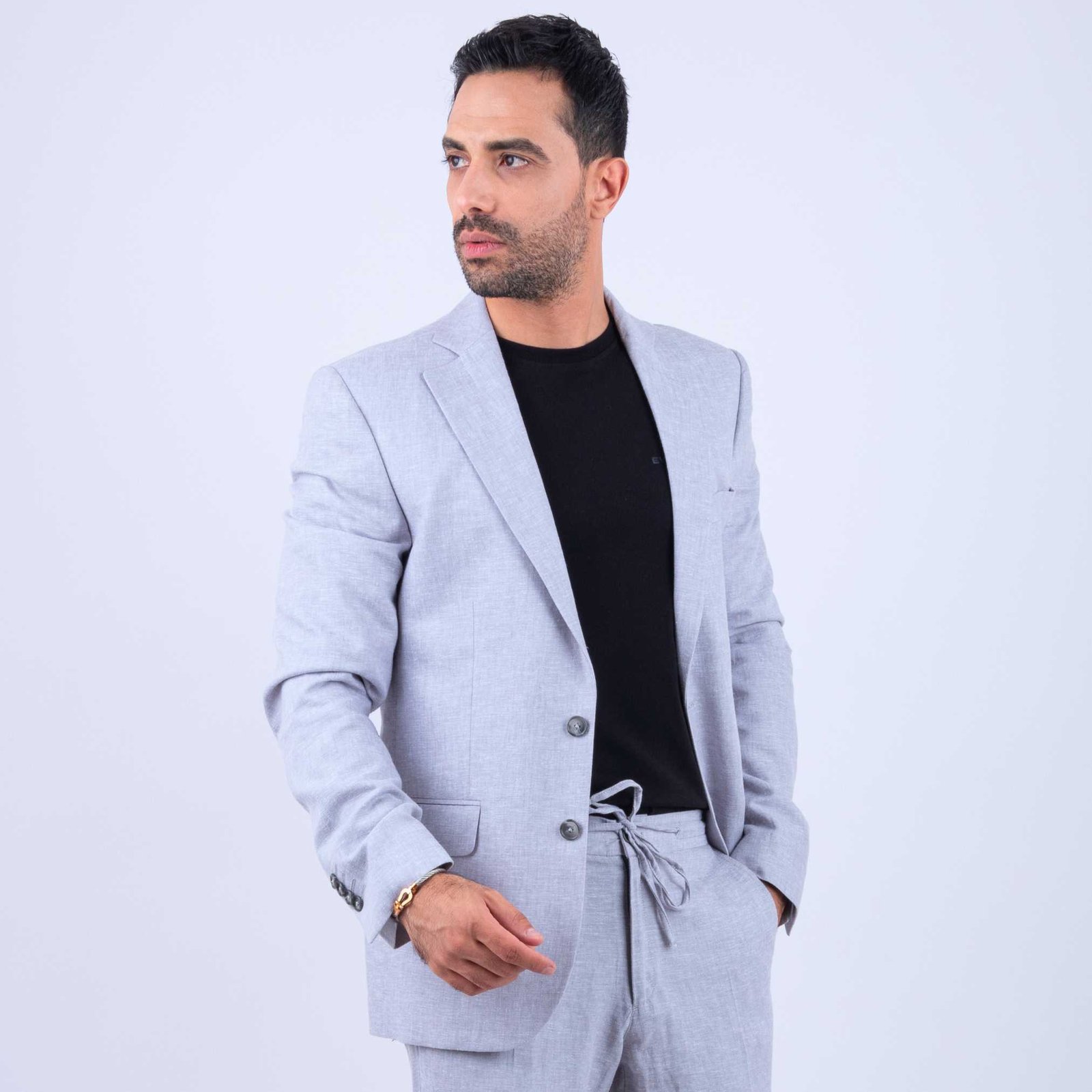 Le gris est l’une des couleurs les plus élégantes du vestiaire masculin. Il incarne la sobriété, la modernité et la distinction. Cette veste homme lin gris peut facilement être associée à des tons neutres comme le blanc, le noir, le beige ou le bleu marine.